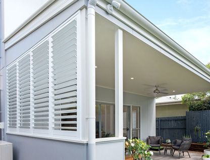 Luxaflex fixed metal awnings provide perfect shading for patios verandahs external windows and doors for traditional style durability.